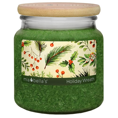 Holiday Wreath - Welcome the Holidays with this earthy fragrance of fresh cut pine with a hint of citrus joined with misted musk and dark cedar. Top: Fir Needle, Orange, Bay Leaf Middle: Spruce, Green Ivy, Clove Bottom: Sugared Spruce, Musk, Cedar